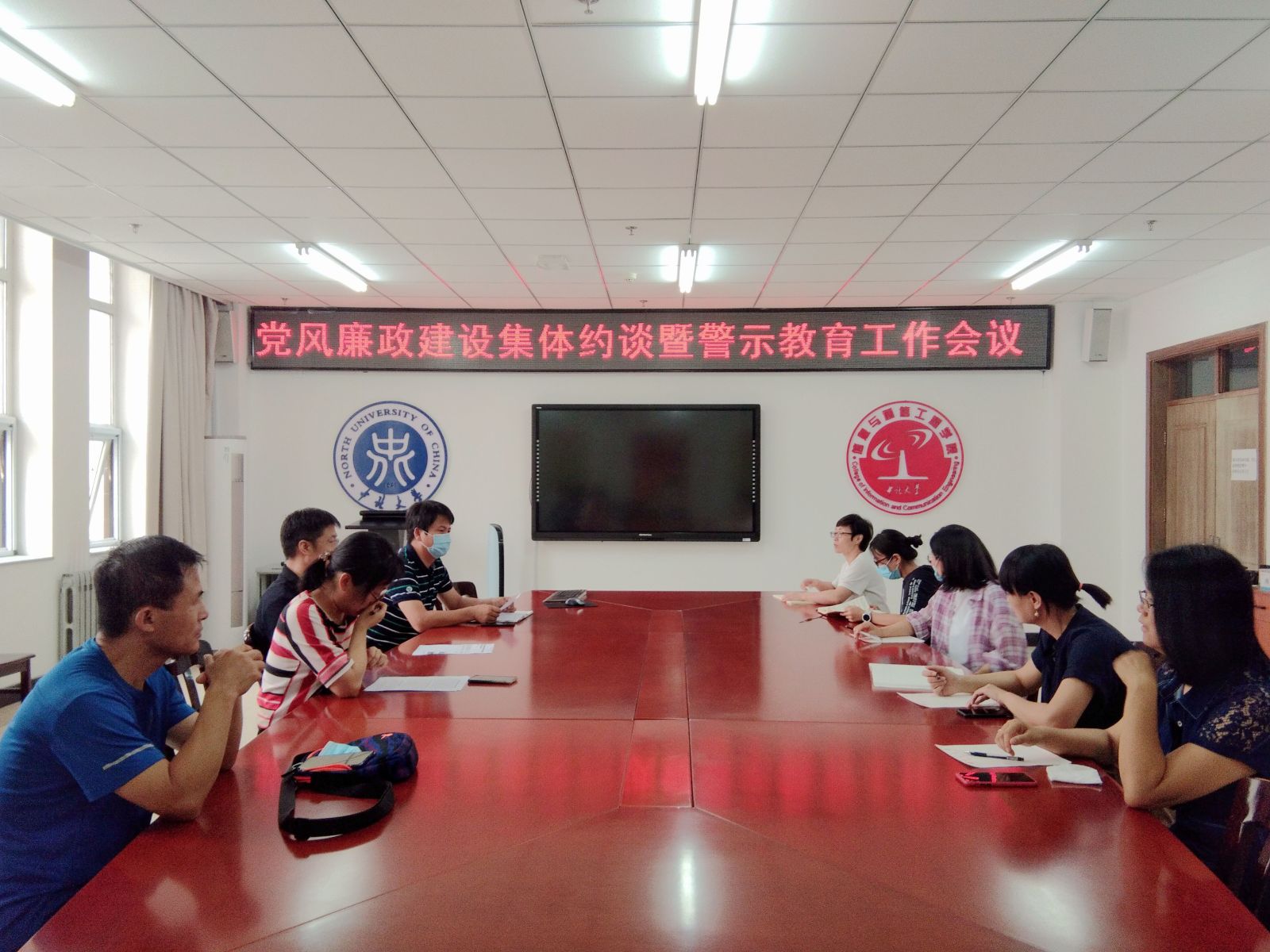 2020年6月22日上午9点,在科学楼B座713会议室,信息与通信工程学院党委召开了党风廉政建设集体约谈暨警示教育工作会,会议由党委书记曹凤才主持,院长杨风暴、副书记魏媛媛、各科科长、支部书记参加了会议。