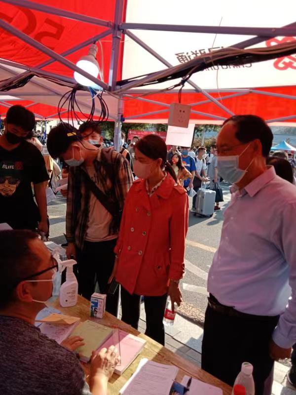 贾维河书记在检查中强调,本次开学报到及静默管理期间,是疫情防控关键期,尤其是开学两天内大量学生进入校园,给防控工作带来很大挑战,各防控工作组和二级党委必须扛牢疫情防控责任,紧盯关键环节,把主体责任落到实处,防控工作人员要坚守岗位,主动担当,构筑校园疫情防控安全屏障。