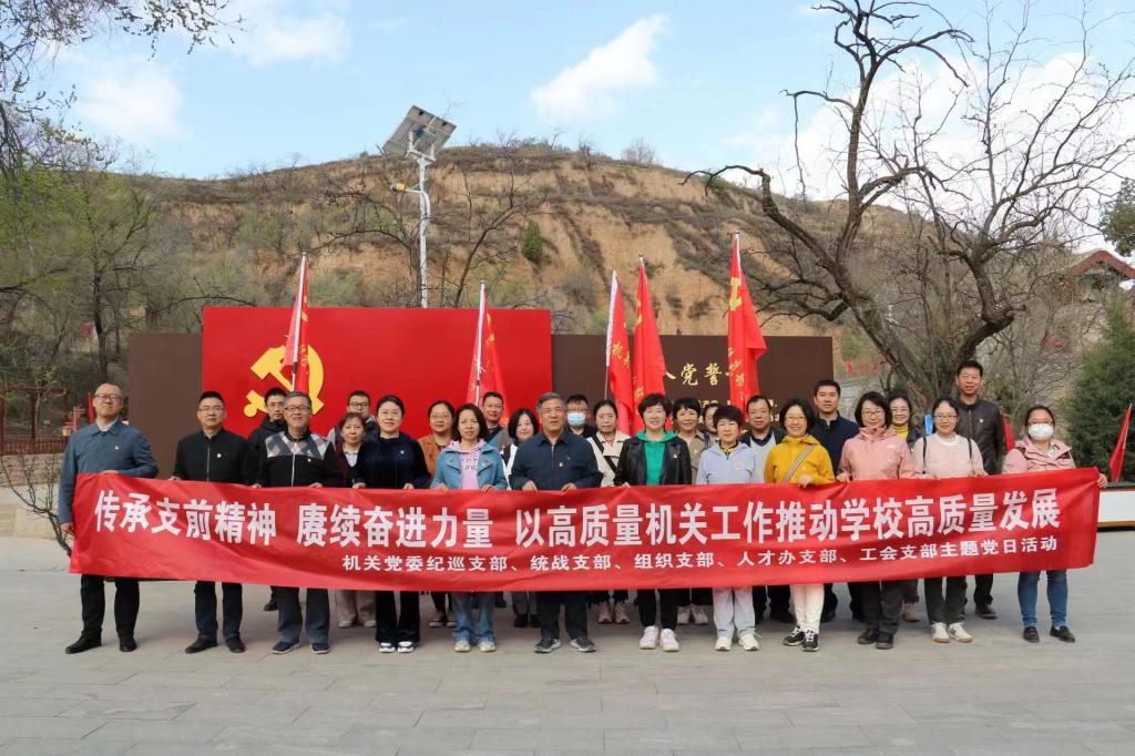 为深入开展学习贯彻习近平新时代中国特色社会主义思想主题教育,进一步坚定初心使命、凝心铸魂、锤炼党性,牢记“三个务必”,继续保持奋发有为、勇往直前的进取精神,进一步提升支部组织力、凝聚力、战斗力,根据校党委统一动员部署要求,4月15日上午,机关党委纪巡支部、组织支部、统战支部、人才办支部、工会支部组织全体党员赴阳曲县店子底村解放太原支前纪念馆开展“传承支前精神,赓续奋进力量,以高质量机关工作推动学校高质量发展”的主题党日活动。校党委常委、党委副书记曾建潮同志和五个支部30名党员参加了活动,活动由机关党委书记、统战部部长夏瑞丽同志主持。