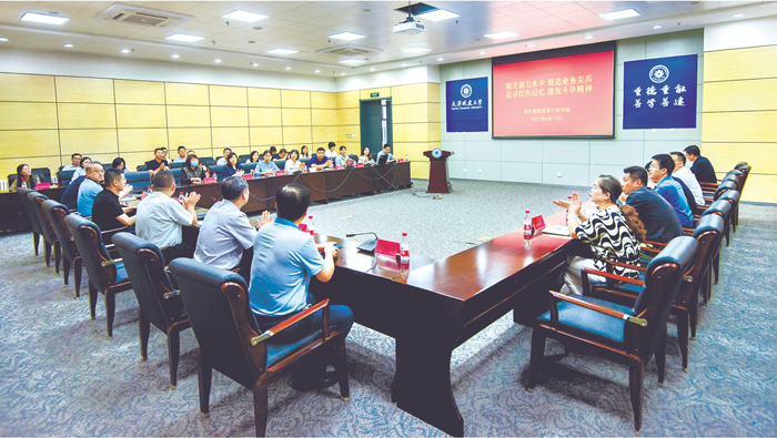 天津市纪委监委驻天津城建大学纪检监察组组织召开“中国纪检监察学院北戴河校区高校纪委审查调查业务培训班”经验交流会,发挥参训学员“种子教员”作用,用培训所学为协作组成员单位、驻在学校二级单位党组织纪检干部解答工作疑惑。 (天津市纪委监委驻天津城建大学纪检监察组供图)