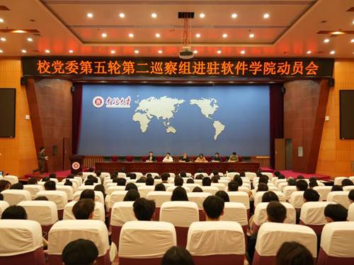 2023年11月3日上午,校党委第五轮第二巡察组进驻软件学院动员会在图书馆五层会议室召开。校党委副书记、巡察工作领导小组副组长曾建潮,校纪委副书记、巡察办主任郑智贞,第二巡察组组长雷丽蓉及巡察组全体成员,审计部部长李京出席会议。学院领导班子成员,全体教工,研究生、本科生党员代表等共计130余人参加会议。会议由巡察办主任郑智贞同志主持。