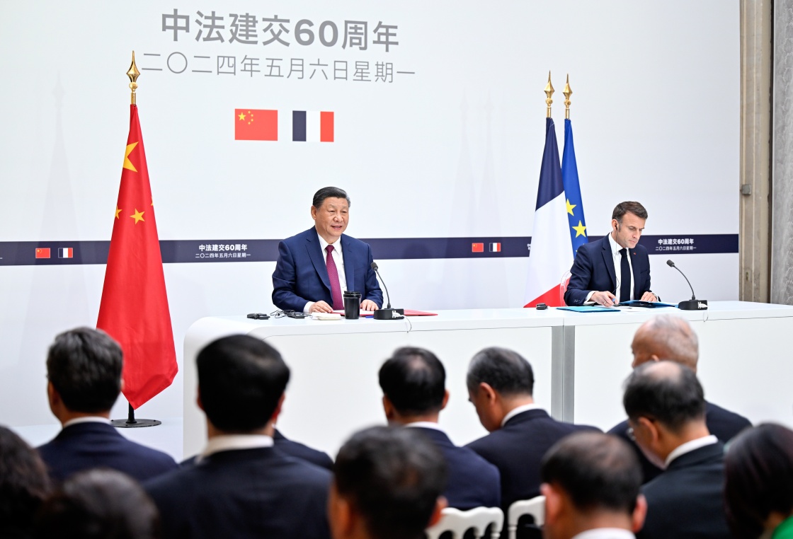 习近平指出,很高兴应马克龙总统邀请,在中法建交60周年之际,再次对法国进行国事访问。我同马克龙总统举行了富有成果的会谈。我们一致认为,中法关系具有珍贵历史、独特价值和重要使命,双方要传好历史的接力棒,弘扬中法建交精神并为其赋予新的时代内涵,开启中法关系下一个60年的新征程。