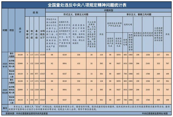 二十届中央纪委四次全会提出,“锲而不舍落实中央八项规定精神,一严到底纠治‘四风’”。图为2025年2月26日,中央纪委国家监委公布的2025年1月全国查处违反中央八项规定精神问题统计表,这是连续第137个月公布月报数据。 中央纪委国家监委新闻传播中心供图